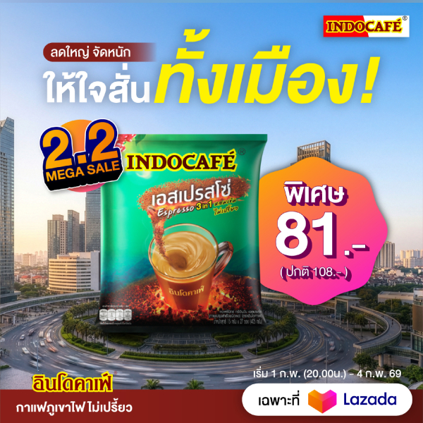 เฉพาะ 2.2 นี้เท่านั้น! อินโดคาเฟ่ กาเเฟปรุงสำเร็จ เอสเปรสโซ่ (ขนาด 27 ซอง)