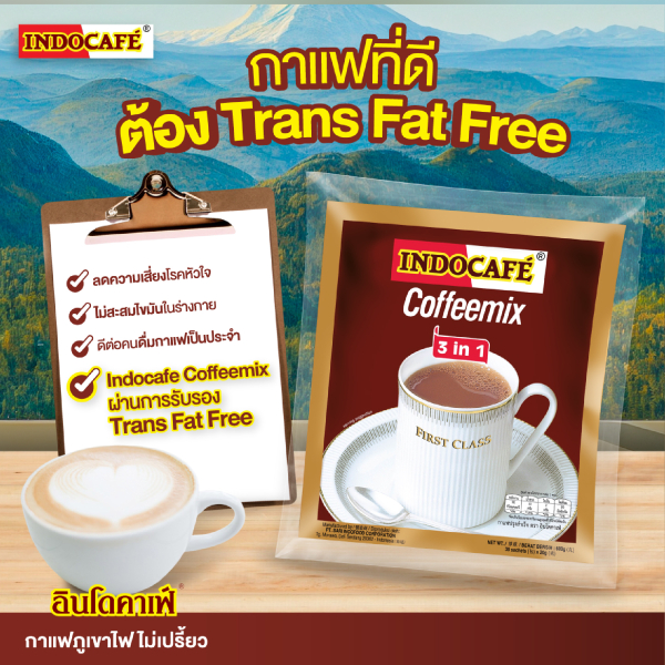 เลือก Indocafe Coffeemix กาแฟ 3in1 ที่ Trans Fat Free ผ่านการรับรอง