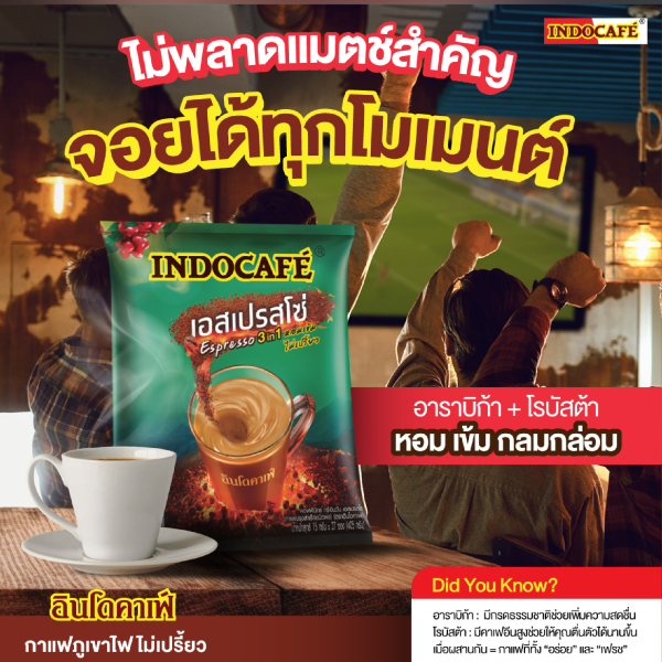 #Indocafe #Espresso3in1 #จอยได้ทุกโมเมนต์ #กาแฟเข้มกลมกล่อม #เติมพลังทุกแมตช์